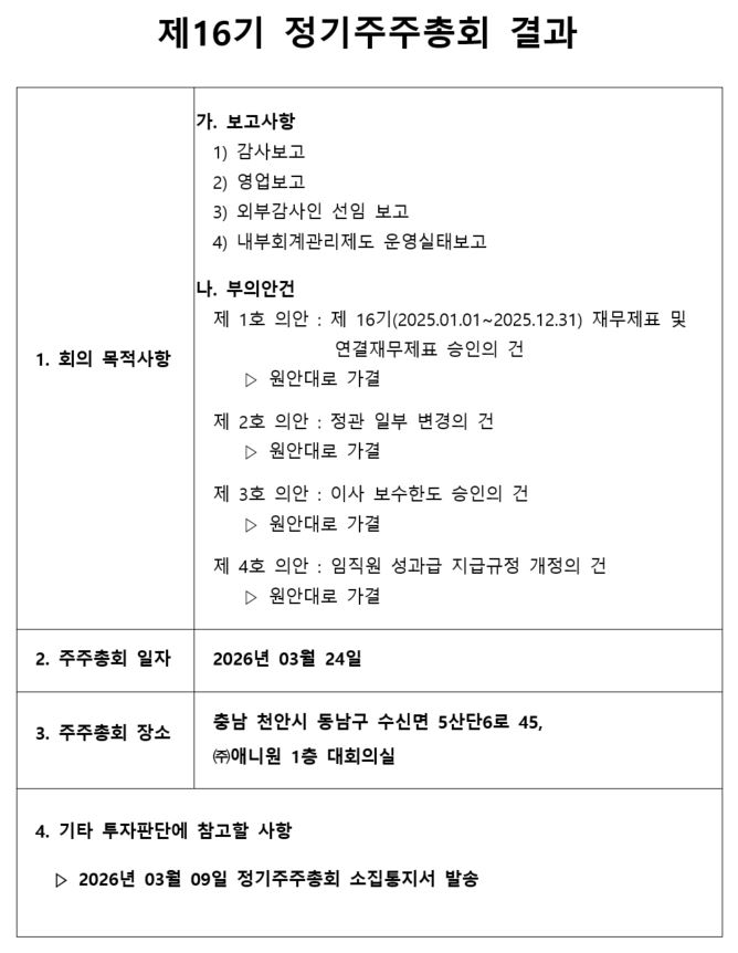 제 16기 정기주주총회 결과 공고