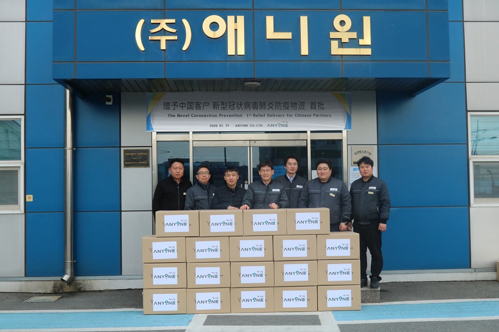 Anyone为 与新型冠状病毒艰苦作战的中国客户们准备了第一批,第二批共计15000张口罩,分两个批次赠与中国客户。Anyone时时刻刻与中国客户共进退,为克服困难积极应对。我们希望早日阻断国内外新型冠状病毒的传播,恢复日常生活。[李相珪 代表理事(右起第四位)和职员们1月31日赠与中国客户 第一批...