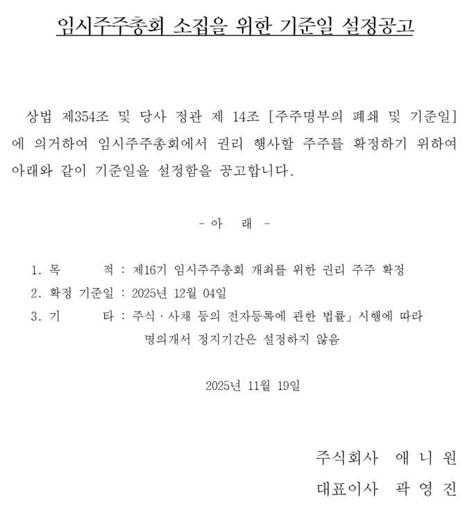 제 16기 임시주주총회 소집 통지('2025.12.30)